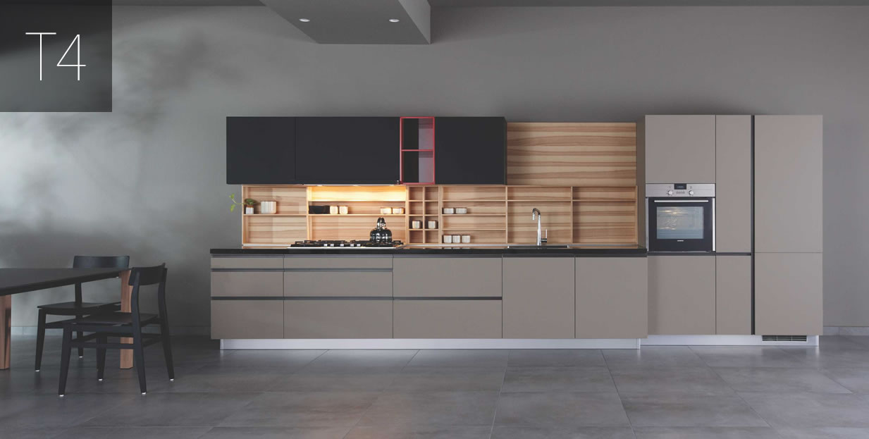 Great design is all about details: from its handle-free fronts to clean lines, T4 is the perfect example of immaculate construction techniques and modern aesthetics. Linear forms divide function in a seamless flow that is effortless and elegant as well as innovatively smart on storage. It’s the kind of kitchen you can make a home around.
