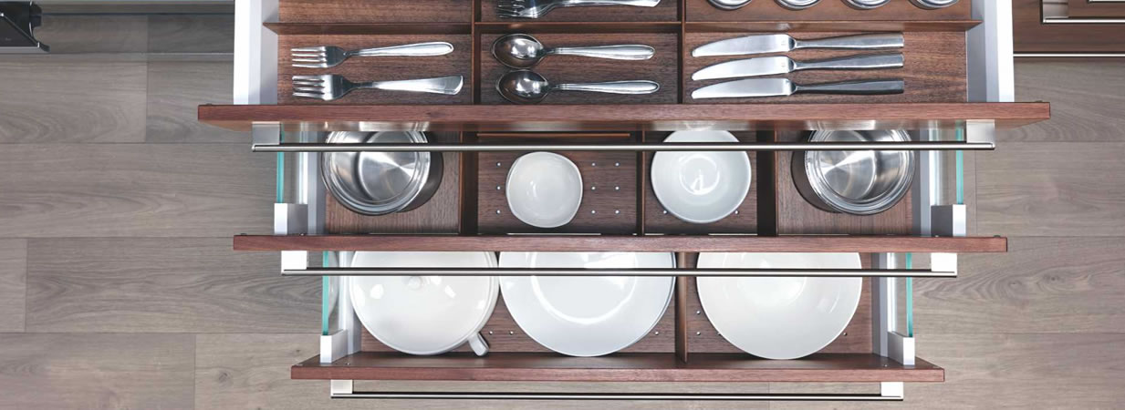 We like to make the effort in our design, so you don’t need to take the effort in using it. The ArciTech from Hettich drawer systems deliver effective use of storage space and unparalleled convenience: from feather light glides to high-performance fittings. We don’t believe in waste of space: be it small niches, narrow cabinets or seemingly inaccessible corners, we make efficient use of space for clear view and easy access. Our flexible organiser systems, based on the modular principle, are adapted to your individual requirements. Internal dividers of various sizes in walnut fit perfectly on beautiful, non-slip linings. Ergonomically shaped options for cutlery and kitchen tools offer a sensible and beautiful organisation system that guarantees order and clarity. Along with the advantage of technology, you get the comfort of guaranteed durability and TIARA’s impeccable customer service. It’s the kind of kitchen you can call an intuitive kitchen.